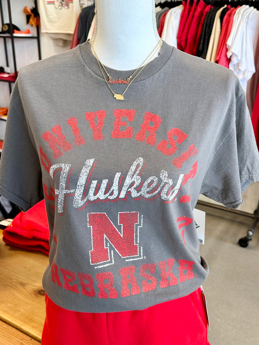 Nebraska Huskers Charcoal Thrifted T-Shirt