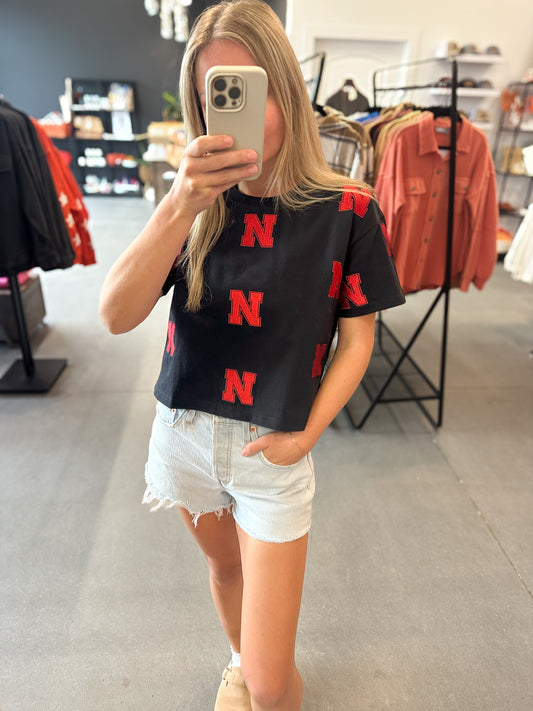 Nebraska Huskers Embroidered Cropped T-Shirt