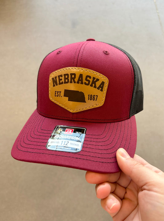 Nebraska Est. 1867 Leather Patch Trucker Hat