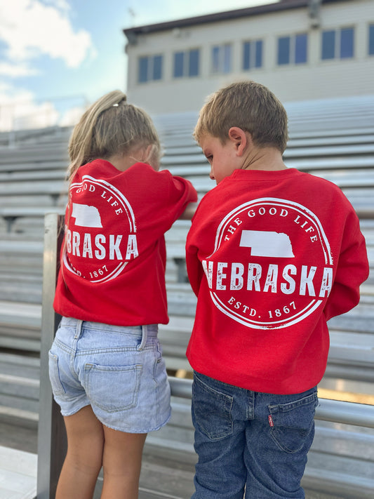 Youth Nebraska The Good Life Red Crewneck Sweatshirt