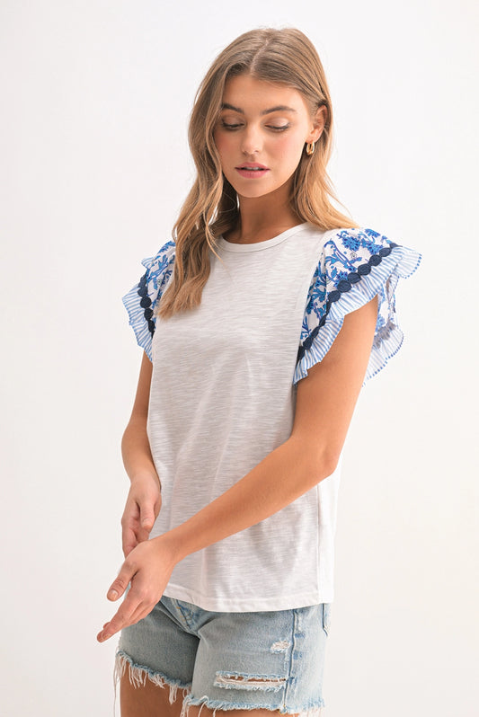 Floral Ruffle Sleeve Shirt