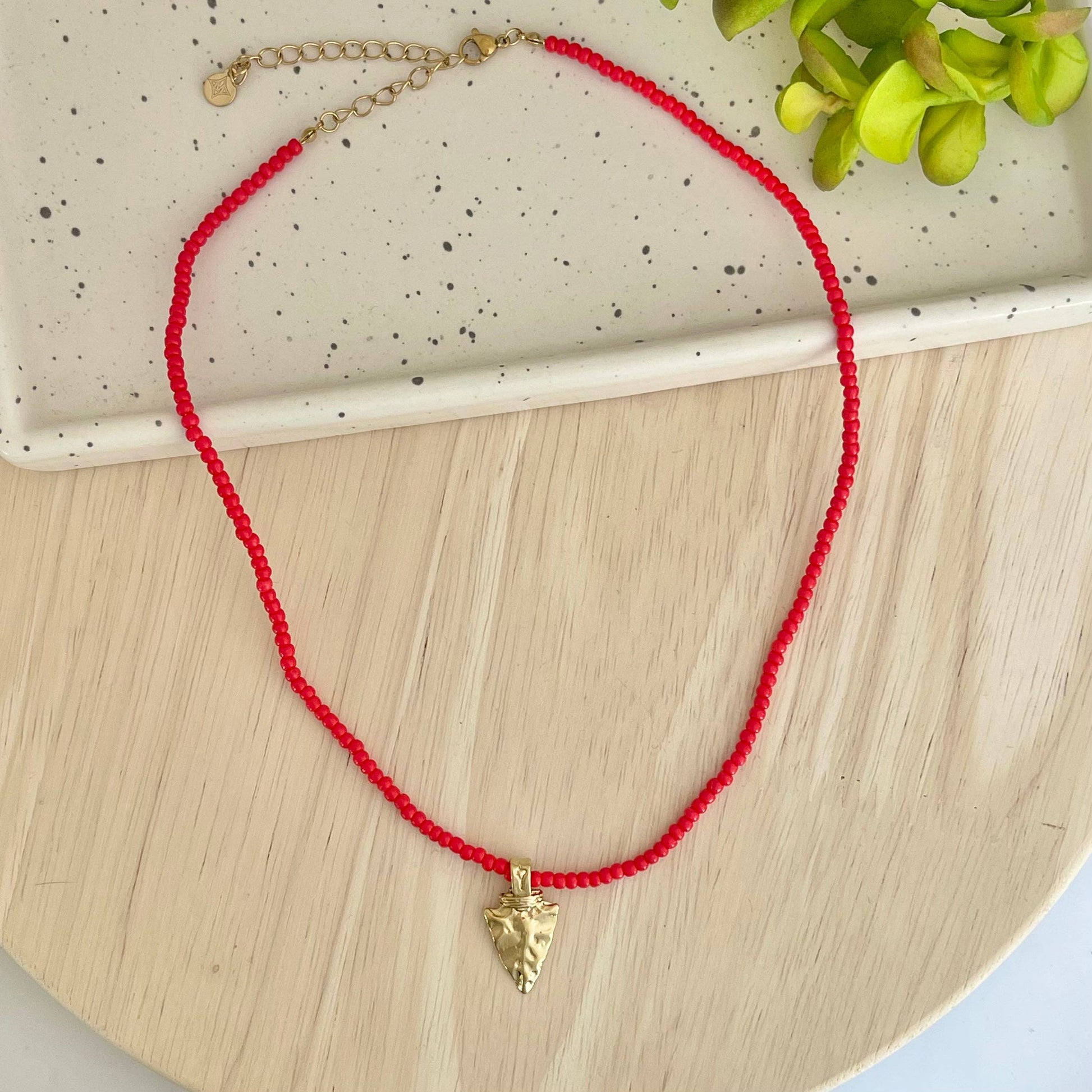 ✦ Dainty seed bead necklace with a gold arrowhead charm ✦ 16" length with a 2" extender