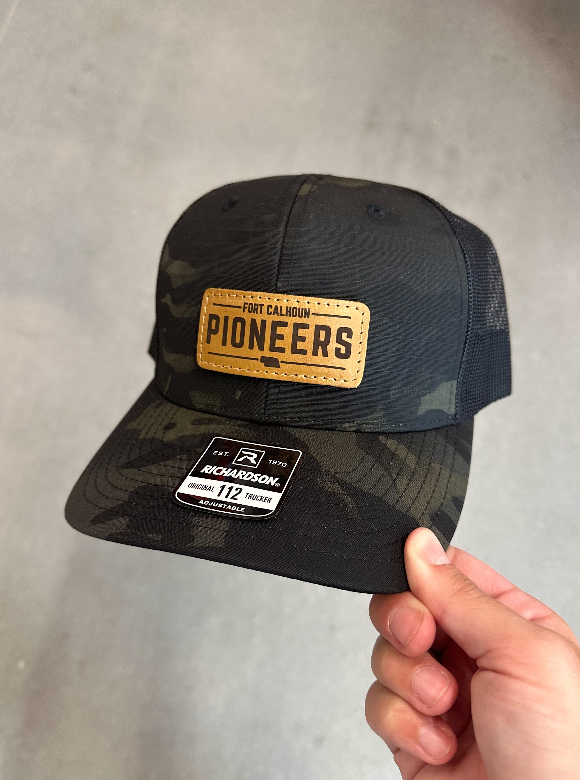 Pioneers patch hat. Engraved American leather patch stitched on Richardson 112 hat.
