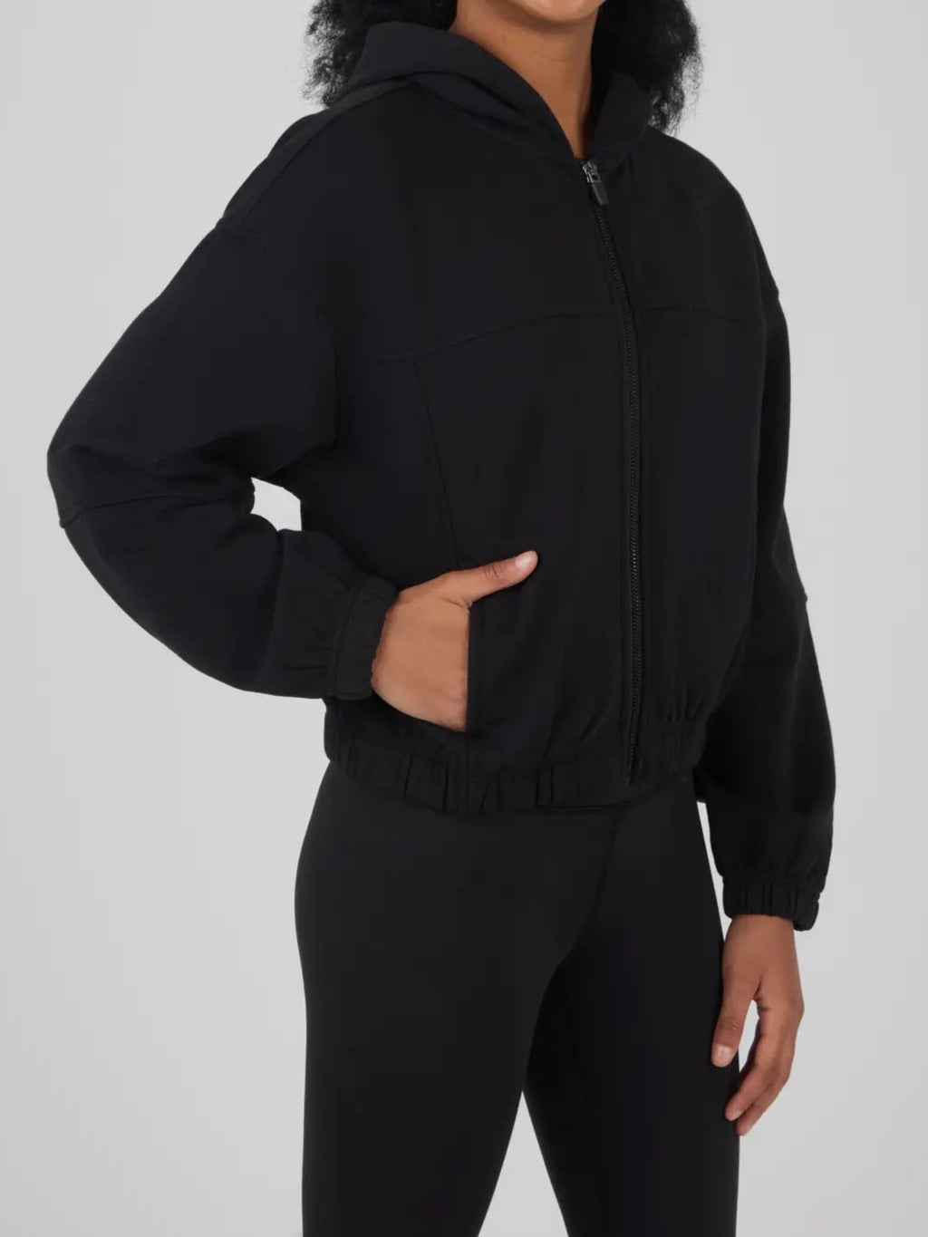 Girls Cloud Plush Zip Front Crop Hoodie Jacket
