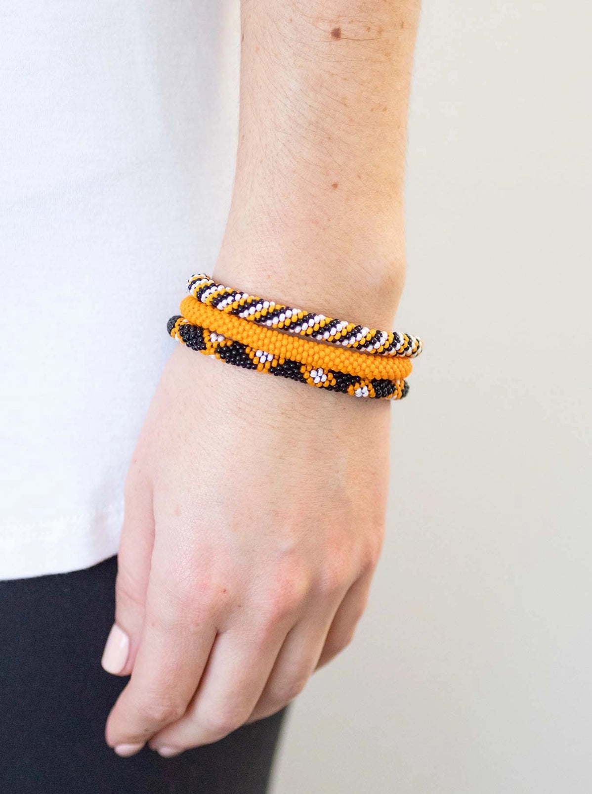 Orange & Black Roll On Beaded Bracelets