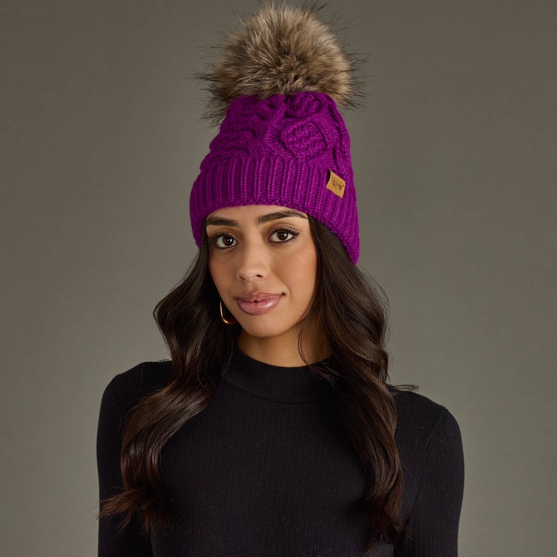 Purple Cable Knit Pom Hat