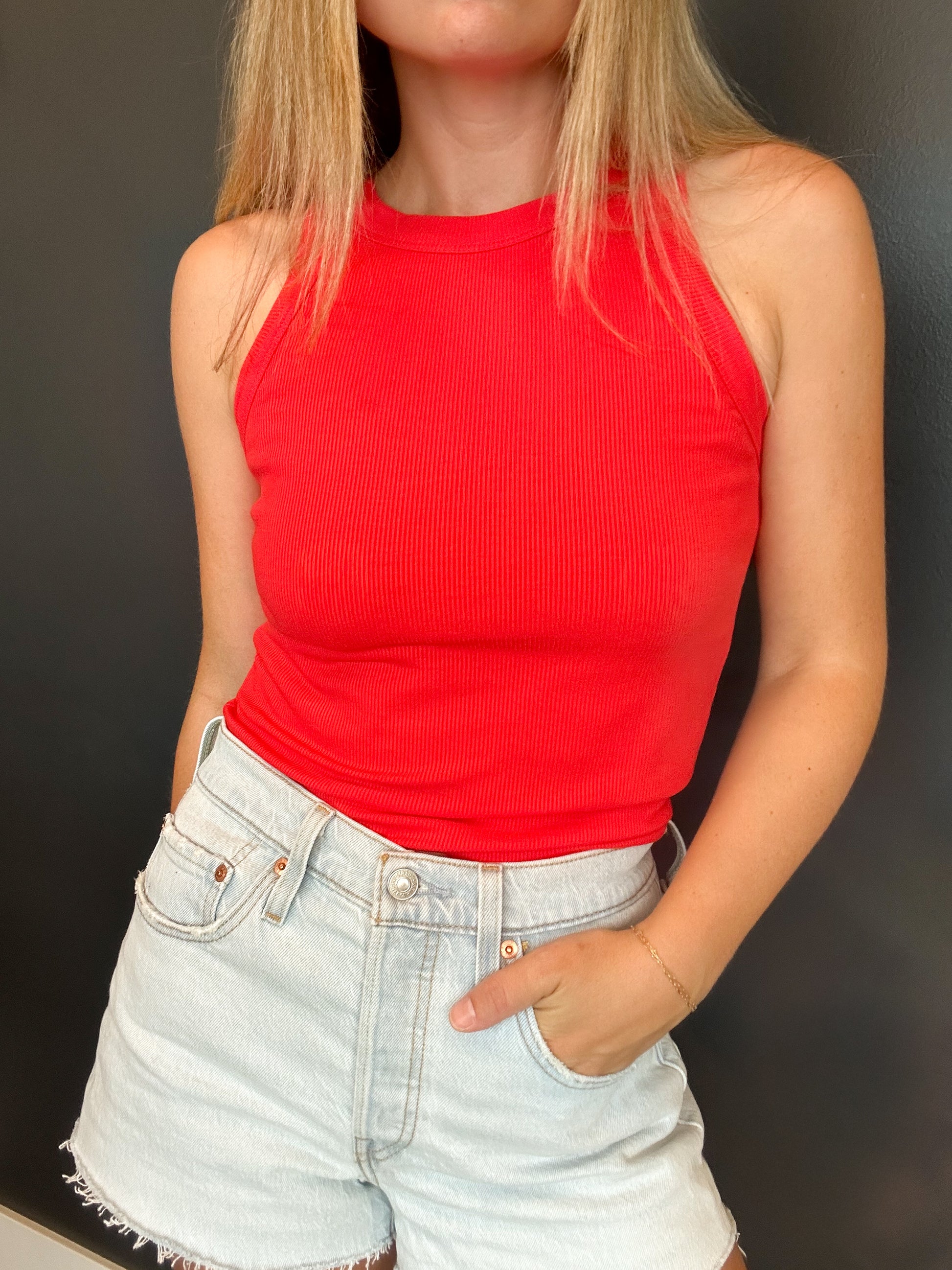 -RIB KNIT FABRIC -ROUND NECK -FITTED STYLE